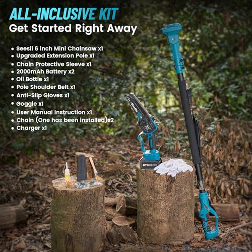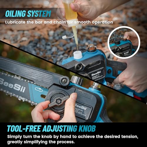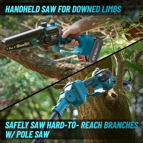 2 in 1 Mini Motosega con Batteria 8000mAh, Seesii 6 Pollici Motosega Telescopica senza spazzole, Svettatoio Telescopico Auto Lubrificante, Serbatoio Olio 30ml, Altezza Di Lavoro 4,57m : Amazon.it: Giardino e giardinaggio