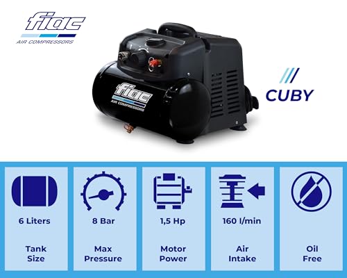 FIAC Compressore d'Aria Portatile CUBY, Compressore Aria Senza Olio, Pressione Massima 8 Bar, Potenza 1.5 CV, Serbatoio 6 Litri, Rumorosità 97 dB : Amazon.it: Fai da te