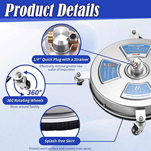 M MINGLE Pulitore per superfici idropulitrice da 43,2 cm, accessori per idropulitrice con 2 bacchette e ugelli di ricambio per idropulitrice, connessione rapida da 1/4", 4000 PSI : Amazon.it: Giardino e giardinaggio