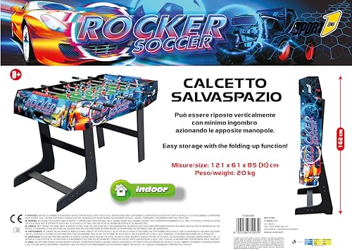 Sport1 Calcetto salvaspazio pieghevole. Calcetto balilla con gambe, da interno in MDF, misure 121x61x85cm. Bigliardino da casa con 8 aste passanti. Segnapunti e palline incluse. Uso indoor. : Sport e tempo libero