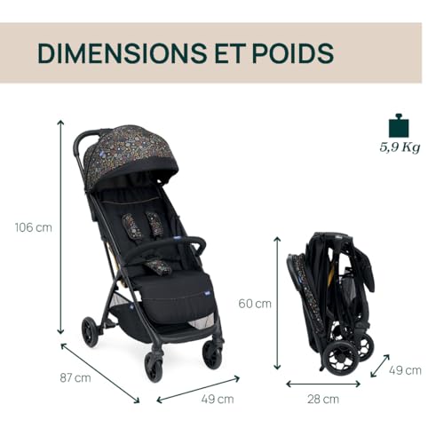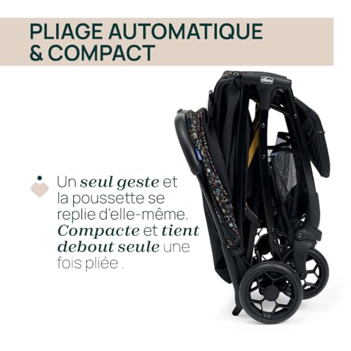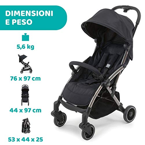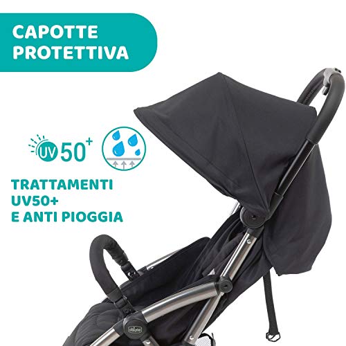 Chicco Cheerio Passeggino Leggero e Compatto da 0 mesi a 15kg (portata max 18kg), Passeggino Pieghevole, Posizione Nanna, Chiusura Automatica in 1 Gesto, Capotte Parasole e Parapioggia, Nero : Prima infanzia