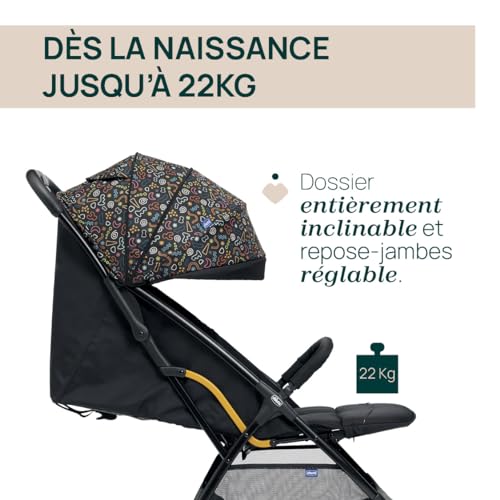 Chicco, Glee, Passeggino 0 Mesi 22 Kg, con Chiusura Automatica e Compatta, Capotte Estensibile con Trattamenti UV50 Antipioggia, Schienale Reclinabile e Regolabile, Poggiagambe : Prima infanzia