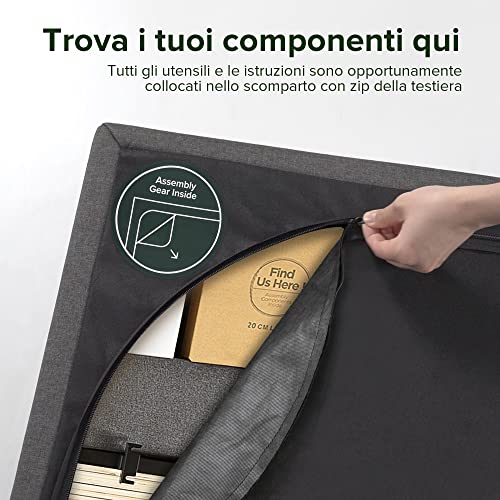 Zinus Lottie Letto 80x190 cm Struttura letto 35 cm di altezza Struttura letto imbottita con supporto a doghe in legno Grigio : Casa e cucina