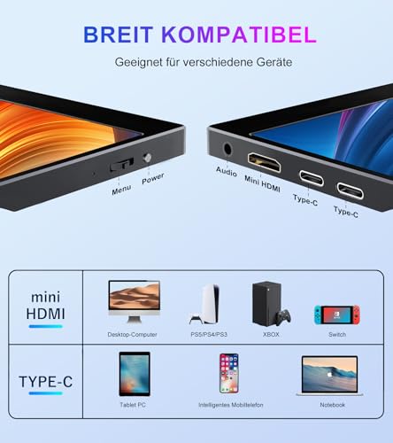 Missun Monitor Portatile da 13,3 Pollici 2.5K, QHD 2560 × 1600 IPS Schermo Portatile per Laptop USB C Monitor Mobile con 72% NTSC, Compatibile con Laptop PC e Console di Gioco : Informatica