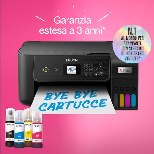 EPSON EcoTank ET 2820 stampante Multifunzione A4 (stampa, copia, scansione) USB, Wi Fi Direct, display LCD 3,7 cm, serbatoi flaconi alta capacità, Epson Smart Panel, fronte/retro, Nero : Informatica