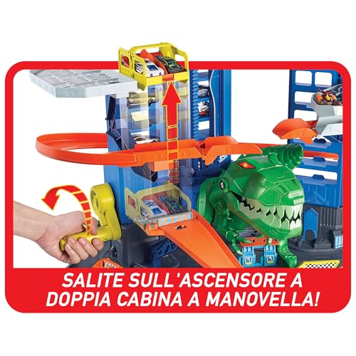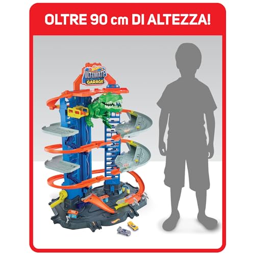 Hot Wheels City Robo T Rex Ultimate Garage Modalità multigiocatore a più livelli per riporre auto in scala 100 plus 1 64, idea regalo per bambini dai 5 anni in su, GJL14 : Giochi e giocattoli