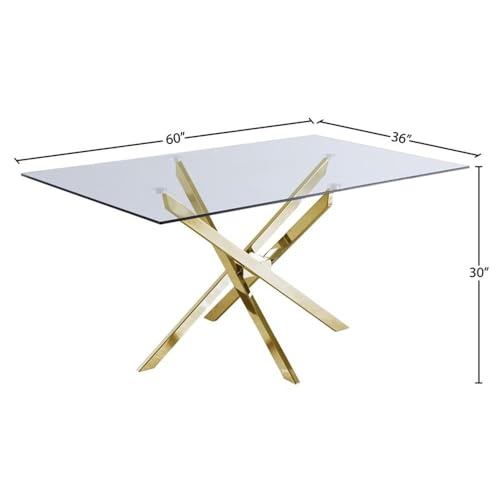 Meridian Furniture Xander Collection Modern | Tavolo da pranzo moderno in vetro temperato con base in metallo resistente, 152,4 x 91,4 x 76,2 cm, finitura oro : Casa e cucina