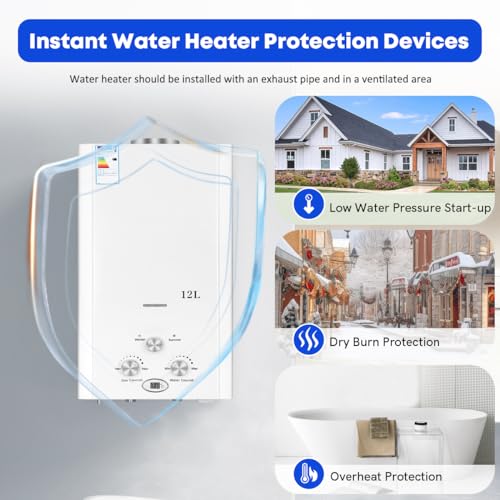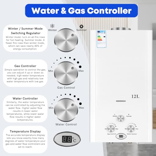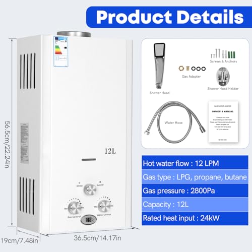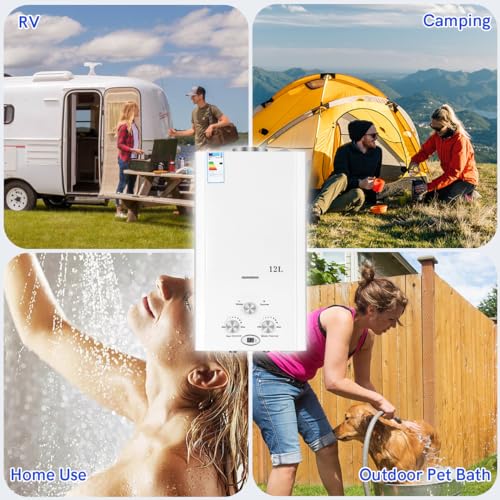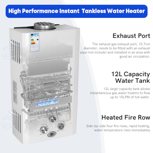 Xverycan Scaldacqua a gas da 12 l, 24 kW, GPL per acqua, propano butano, applicabile, scaldabagno senza serbatoio, per uso domestico, campeggio, roulotte, cabine all'aperto, fienili : Amazon.it: Fai da te