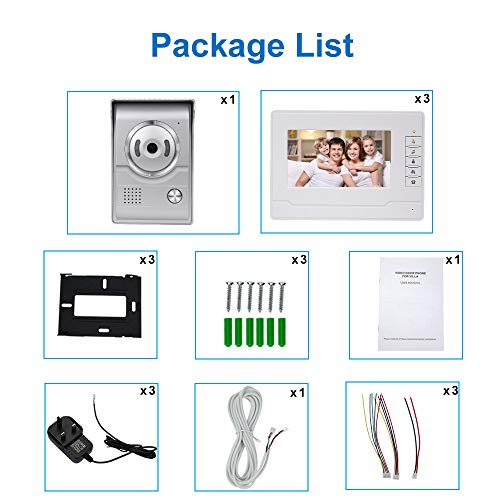 Kadongli KDL Video Citofono Videocitofono Intelligente Telefono Porta Videocitofono Campanello 7 Pollici Telecamera IR Esterna Impermeabile con Monitor per la Casa (3 Monitor) : Fai da te