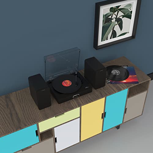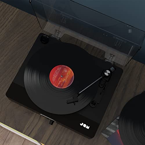 JAM Sound Stream Turntable, Speaker Stereo Integrati, Connettività Bluetooth, 3 Velocità, Adattatore CA, Cavo da RCA ad AUX, Adattatore per Vinili e Tappetino Inclusi, Nero Opaco : Elettronica