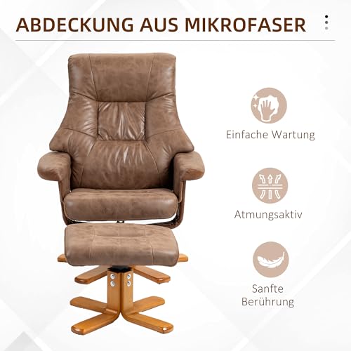 HOMCOM Poltrona relax con sgabello, poltrona TV girevole, poltrona TV con funzione reclinabile, poltrona imbottita per soggiorno, camera da letto, microfibra marrone, 78 x 82,5 x 109 cm : Casa e cucina