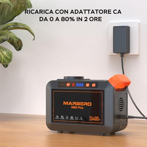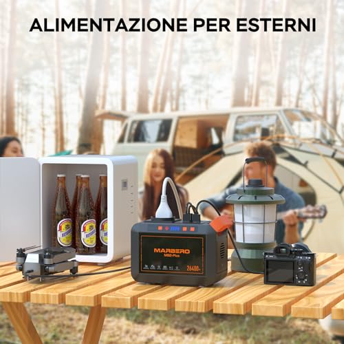 MARBERO 98Wh Centrale Elettrica Portatile 26400mAh Campeggio Generatore di Corrente Power Bank con Presa CA 120W Max 220V CA, CC, USB QC3.0, Torcia LED per CPAP Casa Campeggio Emergenza Backup : Giardino e giardinaggio