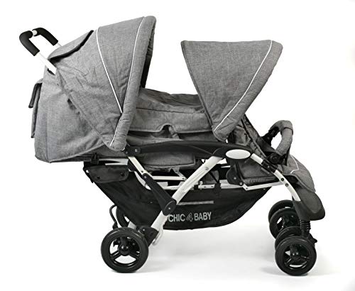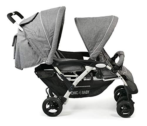 CHIC 4 BABY Passeggino gemellare DUO con borsa per il trasporto e parapioggia, passeggino fratello per due bambini, passeggino gemellare, passeggino tandembuggy, passeggino, jeans grigio : Amazon.it: Prima infanzia