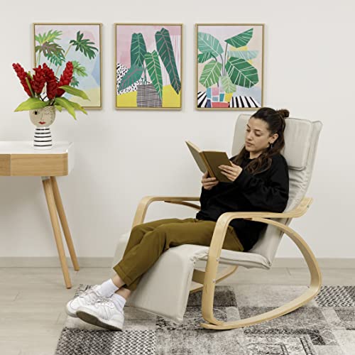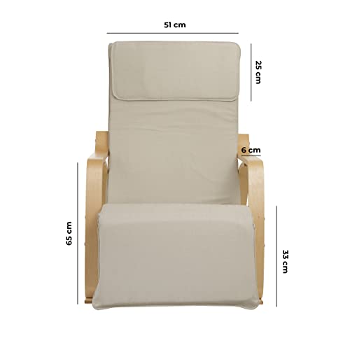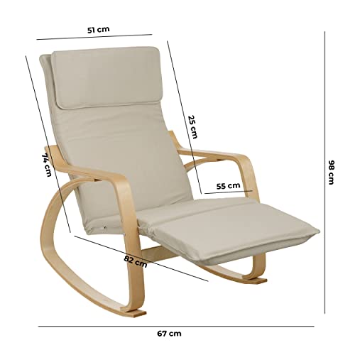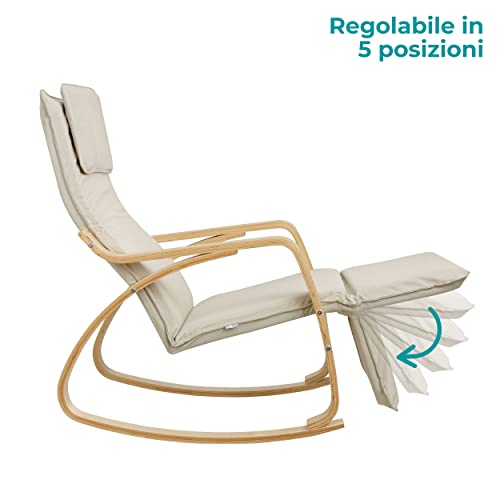 Baroni Home Sedia a Dondolo con Braccioli in Legno da Interno, Poltrona a Dondolo ergonomica in Tessuto con Poggiatesta e Poggiapiedi Regolabile a 5 Altezze, Max 150 kg, Salotto Camera, Beige : Casa e cucina