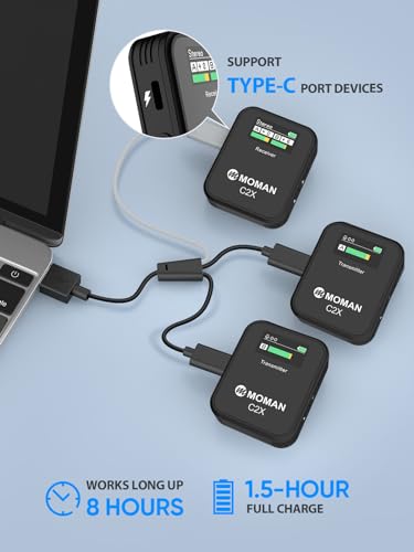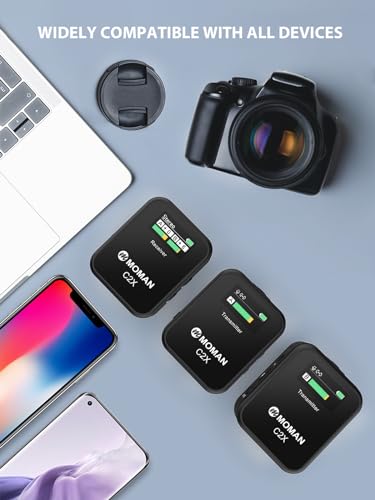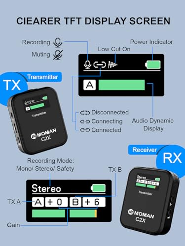 Moman Microfono Lavalier Wireless Professionale, C2X 2.4GHz Microfoni Senza Fili con Schermo TFT per Fotocamera Reflex Videocamera Smartphone Laptop, Microfono Lavalier Wireless Senza Fili : Elettronica