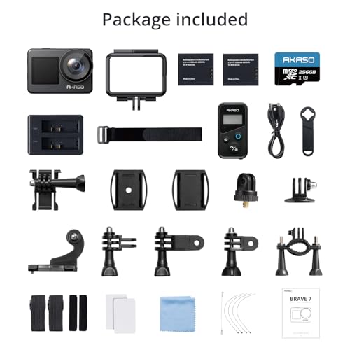 AKASO Brave 7 Action Cam 4K 30FPS 20MP con Scheda di Memoria MicroSDXC U3 da 256GB, IPX8 Fotocamera Subacquea Stabilizzata, Impermeabile Videocamera con Comando Vocale : Elettronica