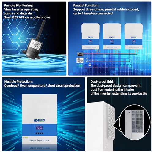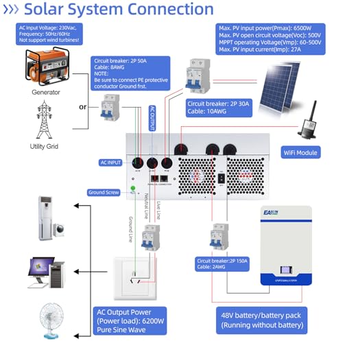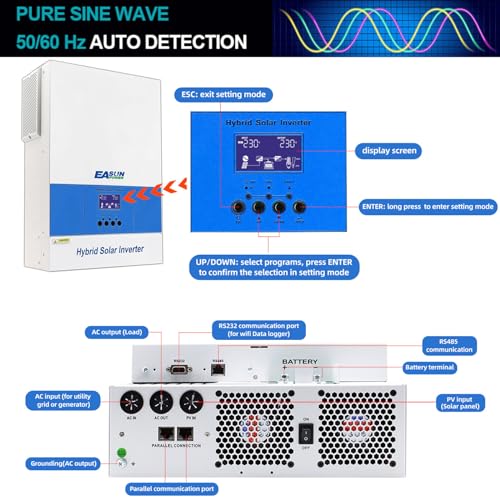 POWLAND 6,2KW Inverter solare ibrido, funziona senza batteria, indipendente da rete Inverter onda sinusoidale pura, Uscita 230V, PV 60 500Vdc, per batterie da 48V, funzione parallela, con Modulo WiFi : Amazon.it: Commercio, Industria e Scienza
