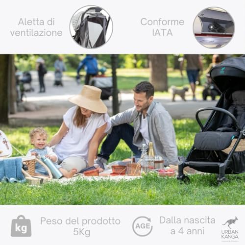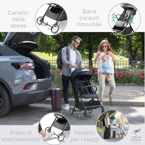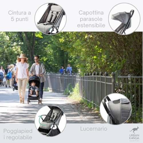 Urban Kanga Wallaby Passeggino Ultra Compatto e Leggero da Viaggio pesa solo 5 Kg 0 40 mesi (Oxford Grigio) : Prima infanzia