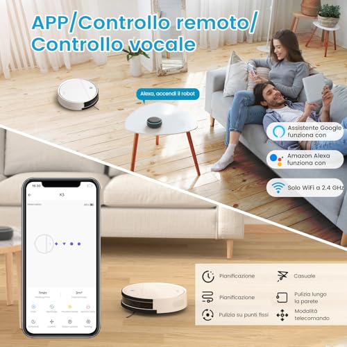 OKP K5B Robot Aspirapolvere e Mocio Ultra Sottile 7.7 cm, 2500Pa, Wi Fi/App/Alexa, Adatto per Salviette Monouso, Ideale per Peli di Animali, Tappeti, Pavimenti Duri, Automatic Recharge : Casa e cucina