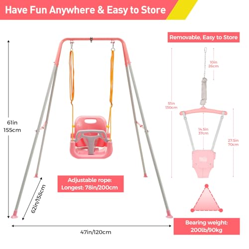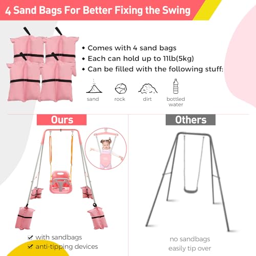 FUNLIO 2 in 1 Altalena e Altalena da Porta per Bambini, Altalena Resistenti con 4 Sacchi di Sabbia, Supporto in Metallo Pieghevole per Giochi al Coperto/Esterno, Facile da Montare e Riporre Rosa : Amazon.it: Giochi e giocattoli