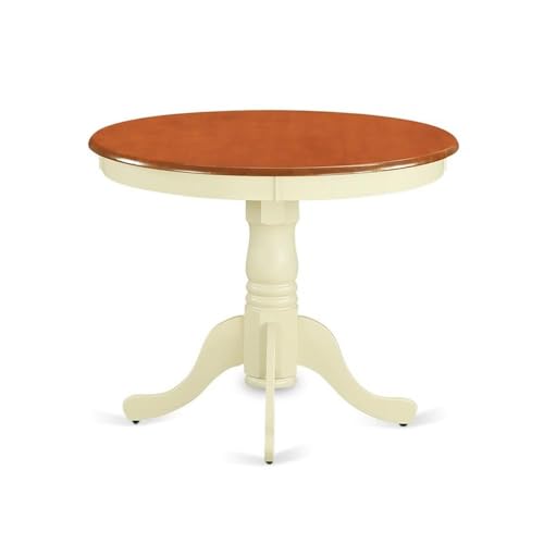 East West Furniture ANQU5 WHI W Set dinette per 4 persone, con tavolo rotondo da cucina con piedistallo e 4 sedie, 91 x 91 cm : Casa e cucina