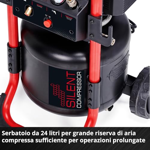 Einhell Compressore TE AC 240/24 Silent (1500 W, max. 10 bar, serbatoio da 24 l, potenza di aspirazione 240 l/min, compressore silenziato da 70 dB, 2 manometri, riduttore di pressione) : Amazon.it: Fai da te