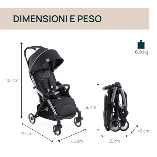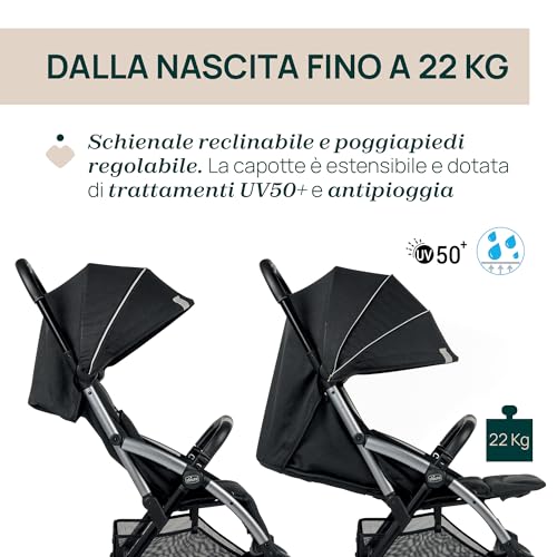Chicco Goody Plus, Passeggino 0 Mesi 4 Anni, con Chiusura Automatica e Compatta, Capotte Estensibile con Trattamenti UV50 Antipioggia, Schienale Reclinabile e Regolabile in 3 Posizioni, Poggiagambe : Prima infanzia