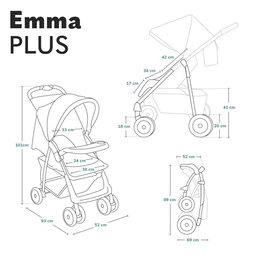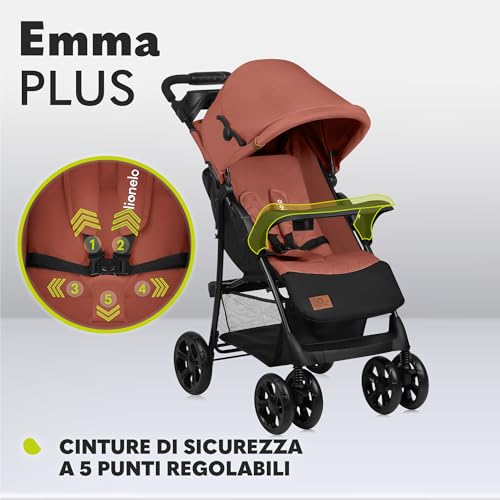 Lionelo Emma Plus Passeggino Leggero e Pieghevole da 6 Mesi a 15kg Schienale regolabile alla posizione sdraiata, Cinture a 5 punti Ammortizzatori, Cappotina XXL Vassoio portabibite Borsa (CORAL ROSA) : Prima infanzia
