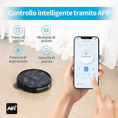 AIRROBO Robot Aspirapolvere, Potente Silenzioso Aspirapolvere Robot, WiFi/APP/Telecomando, Design Sottile, Ideale per Peli di Animali, Moquette e Pavimento Duro, P20 : Casa e cucina