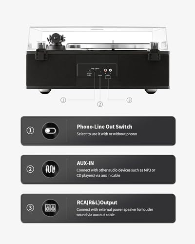 ANGELS HORN Giradischi Vinile Bluetooth | Giradischi Hi Fi a 2 velocità con altoparlanti integrati | Include preamplificatore Phono & Cartuccia magnetica AT 3600L | Edizione classica nera : Strumenti Musicali