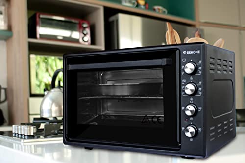 BEHOME Forno Elettrico Ventilato 70 litri con Girarrosto, Autopulente e Smaltato, Temperatura fino a 320° Doppio Vetro con Luce Interna e Timer 1 Girarrosto 2 Teglie e 1 Griglia (Nero) : Amazon.it: Casa e cucina