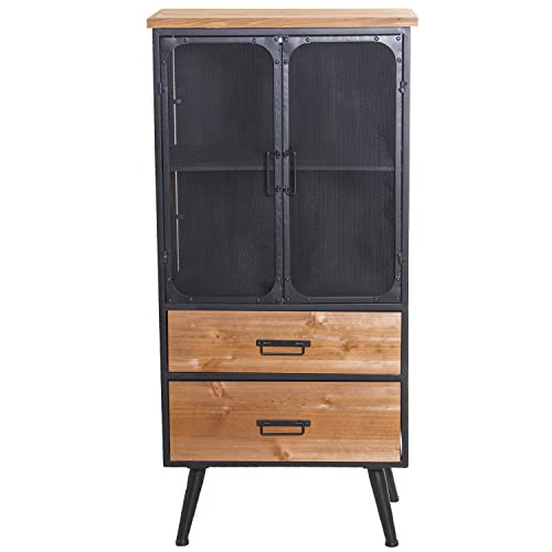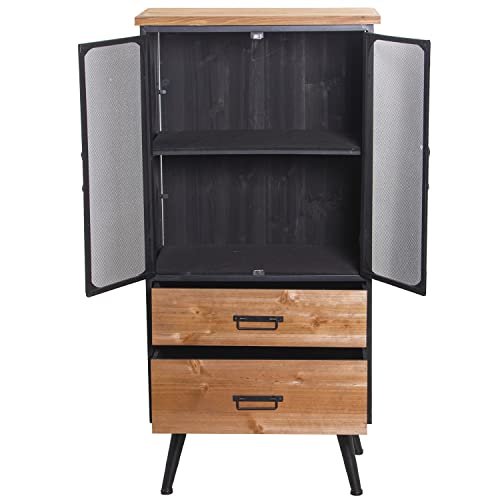 DRW Vetrina con 2 Ante griglia in Metallo e 2 cassetti in Legno MDF Nero e Naturale 60 x 38 x 121 cm, Grande : Amazon.it: Casa e cucina