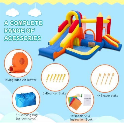 Ballsea Castello gonfiabile per bambini con soffiatore, scivolo asciutto/acqua, capacità 6 bambini/200kg, L6,28 x L2,93 x H1,95m : Amazon.it: Giochi e giocattoli