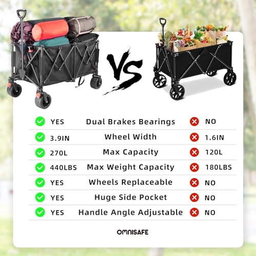 OMNISAFE Carrello pieghevole da 260 l, resistente, da giardino/spiaggia, con capacità di carico di 199,6 kg, vagone per la spesa all'aperto con tasca e freni, per campeggio, shopping, sport : Amazon.it: Giardino e giardinaggio