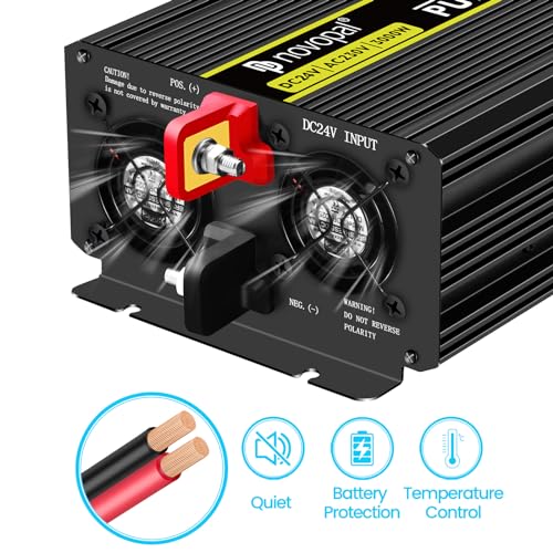 NOVOPAL Onda Sinusoidale Pura Power Inverter 3000W DC 24v in AC 220v 2 EU Presa con Uscita USB, telecomando da 5 metri e due ventole di raffreddament : Amazon.it: Auto e Moto