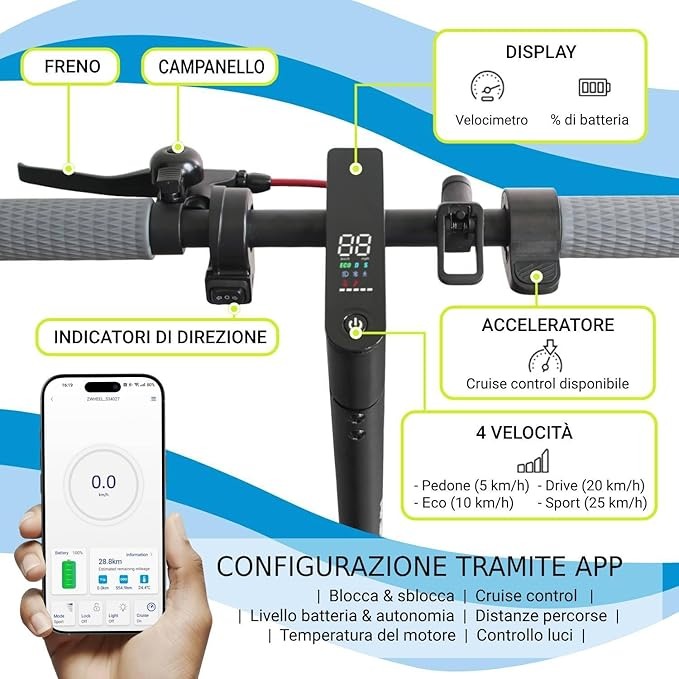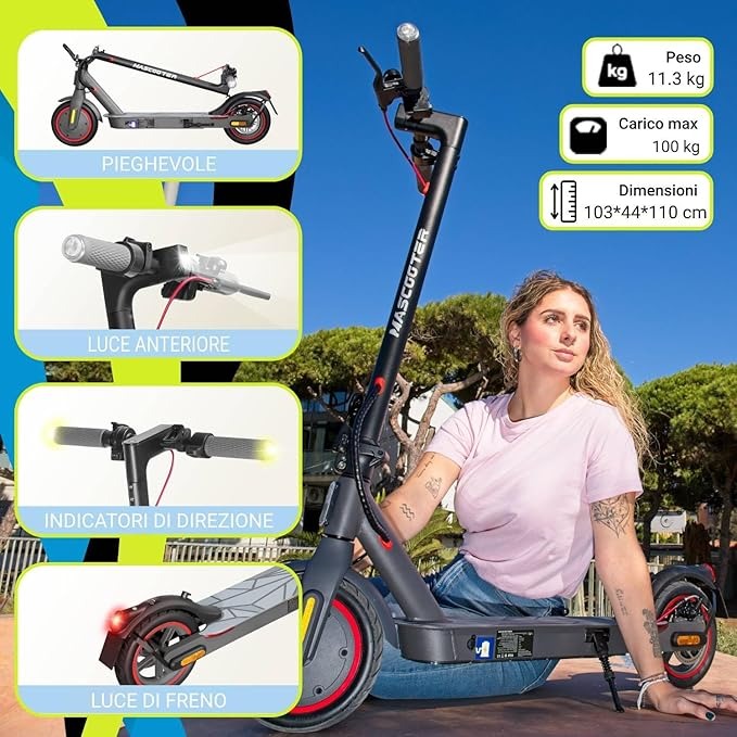 MASCOOTER Monopattino Elettrico Adulto (300W) - Autonomia 20km - Indicatori di Direzione e Rigenerazione Batteria in Frenata - Ruote da 8.5", Doppi Freni Elettrici e Disco - App Mobile
