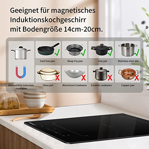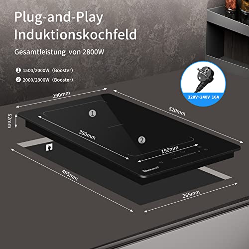 GIONIEN Piano cottura a induzione a 2 zone con spina,30 cm Domino piano cottura elettrico, doppia piastra a induzione con zone flessibili,sicurezza bambini, timer,16A, 2800W : Amazon.it: Grandi elettrodomestici