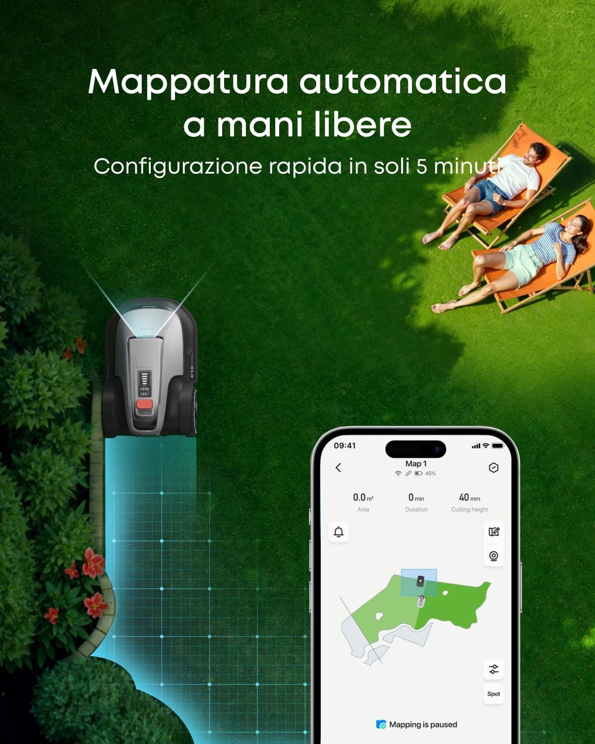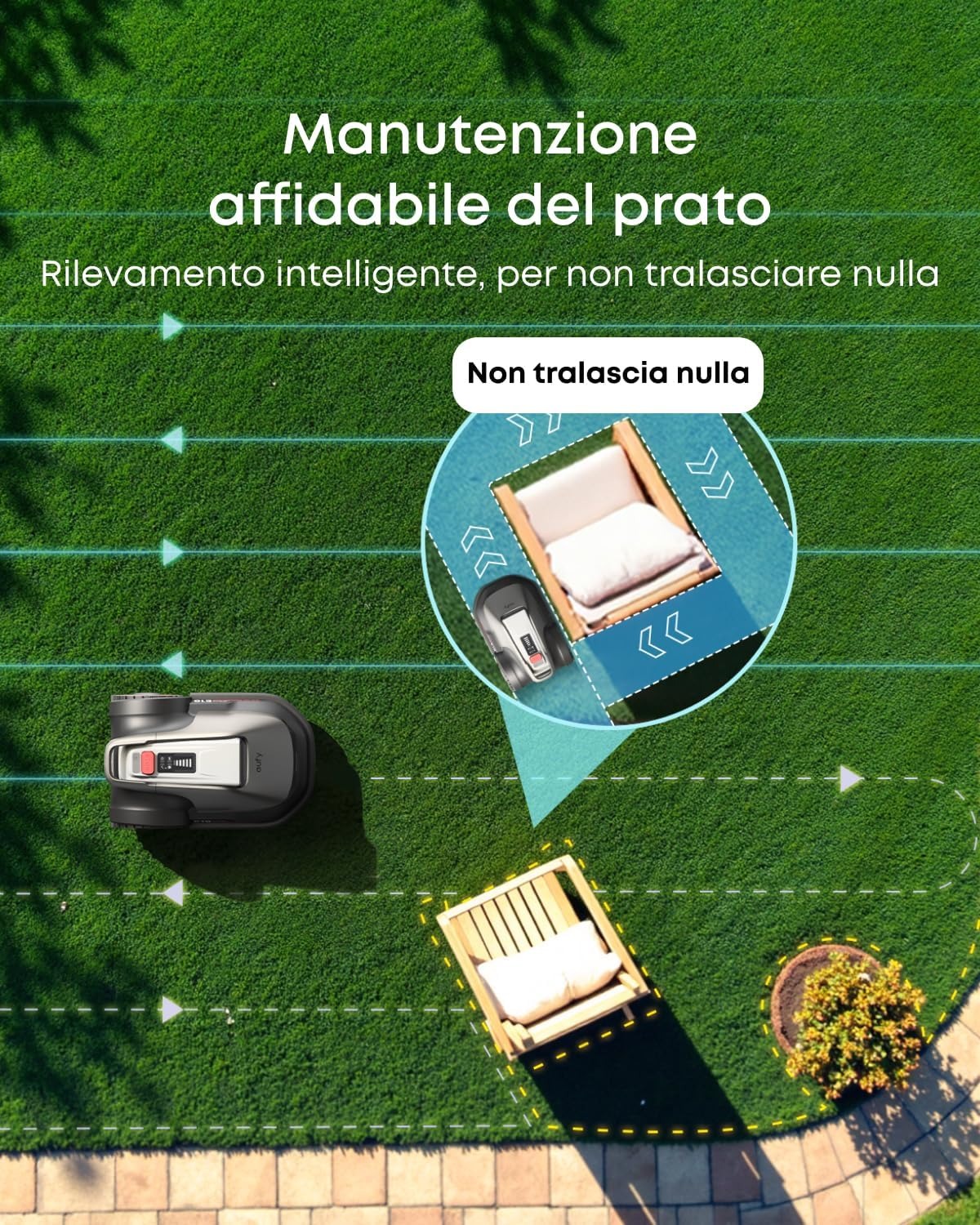 eufy E15 Robot Tagliaerba senza Filo Perimetrale, Nessuna Perdita di Segnale, Senza RTK,TrueVision, Navigazione Smart, Giardini fino a 800 m², Taglio Preciso Bordi, Evita Ostacoli, Controllo App