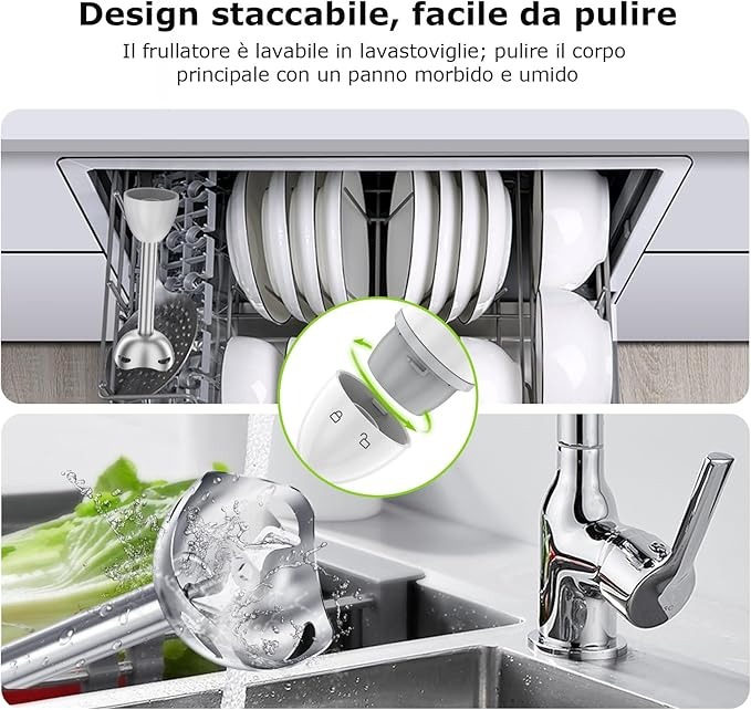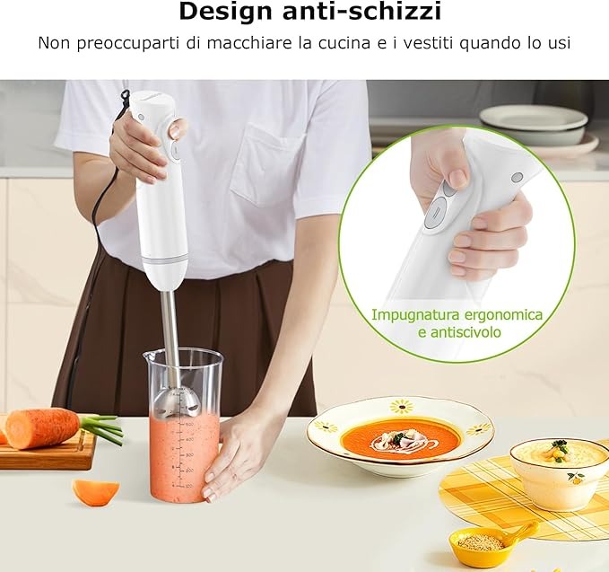 Bonsenkitchen Frullatore a Immersione 2 in 1, Minipimer in acciaio inossidabile da 1000 W, 2 Velocità, con Misurino da 700 ml con Coperchio, per Pappe, Zuppe, Frullati, Puree