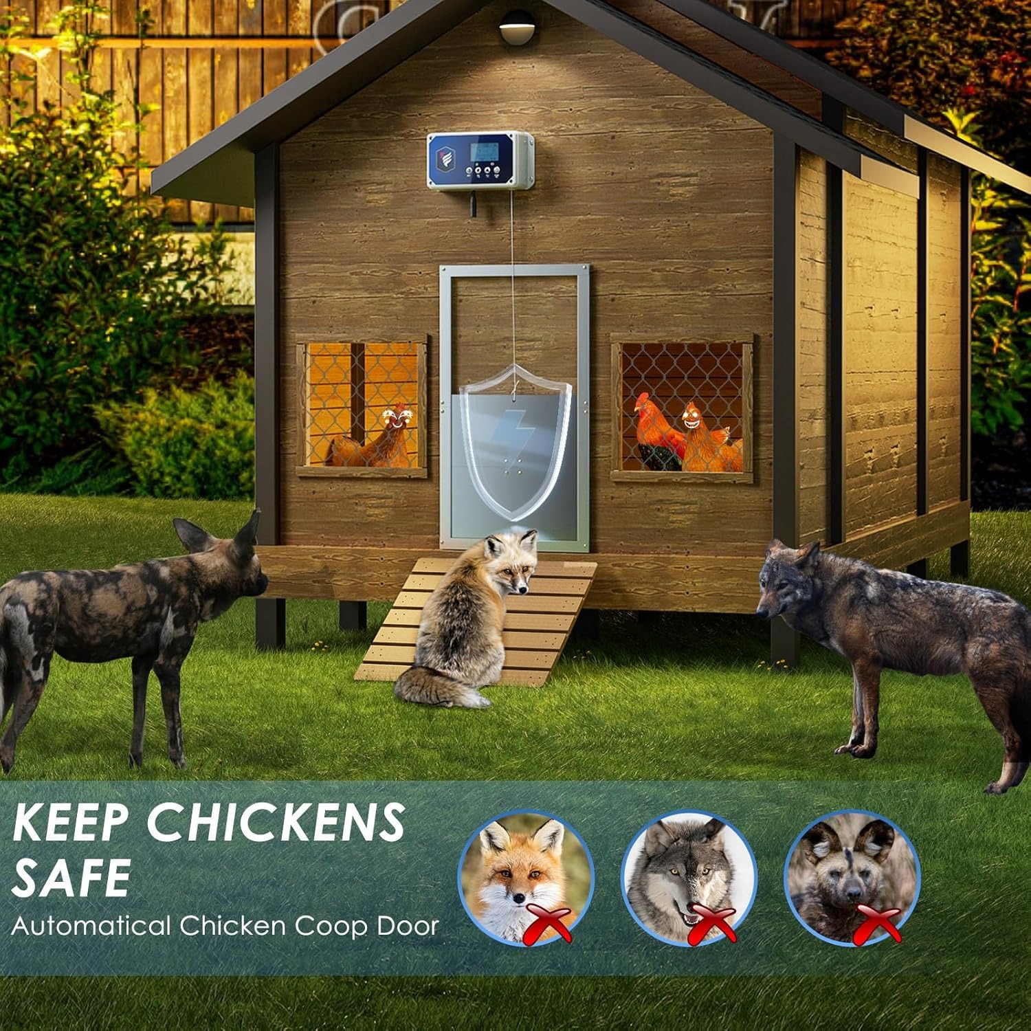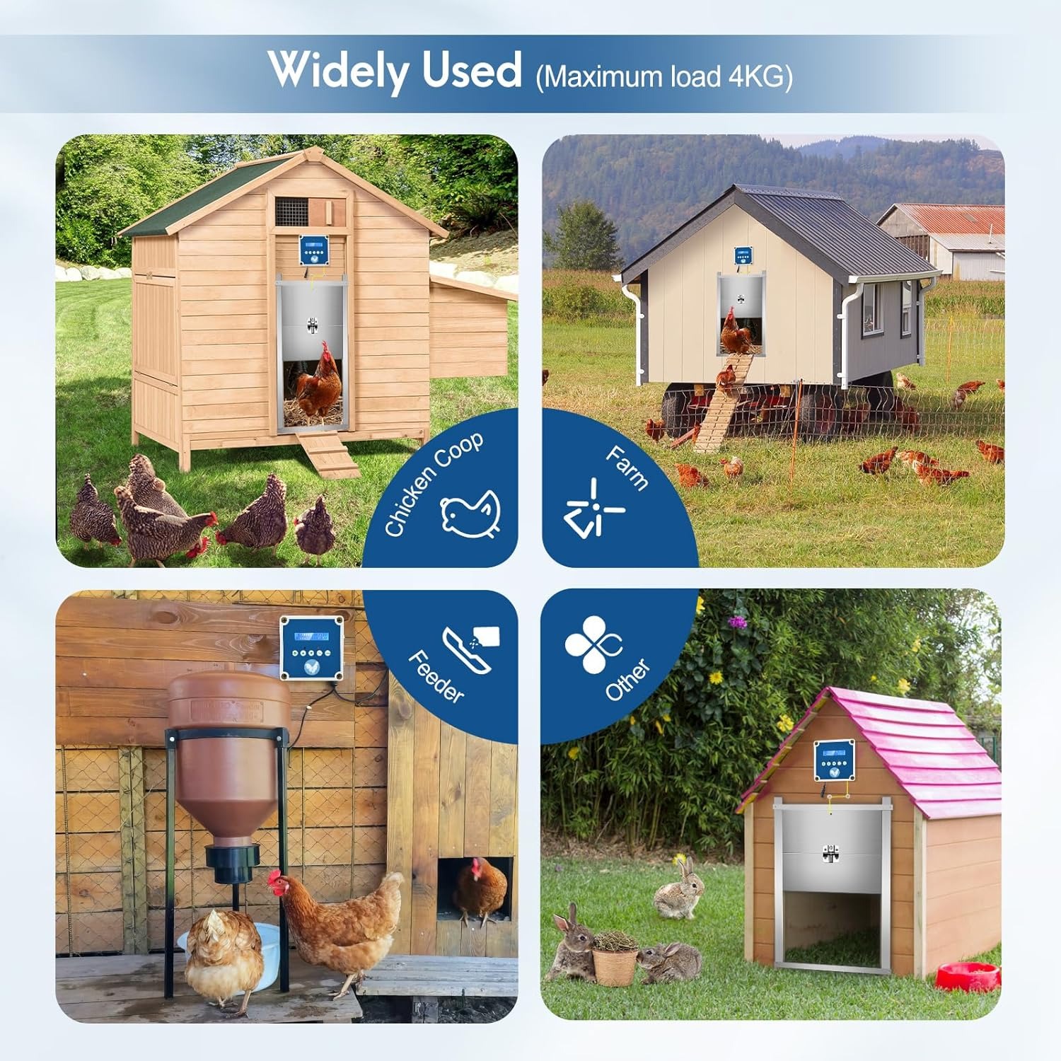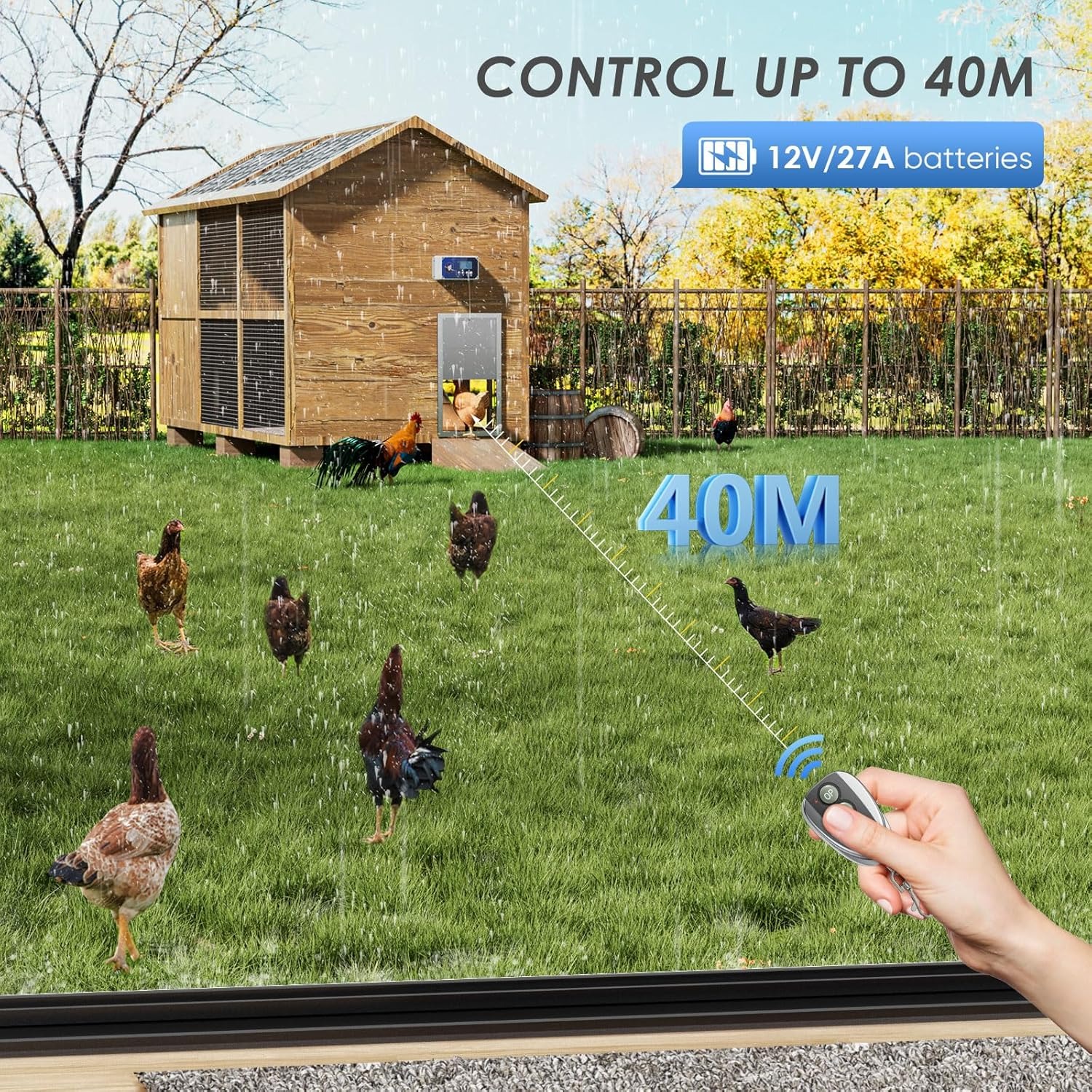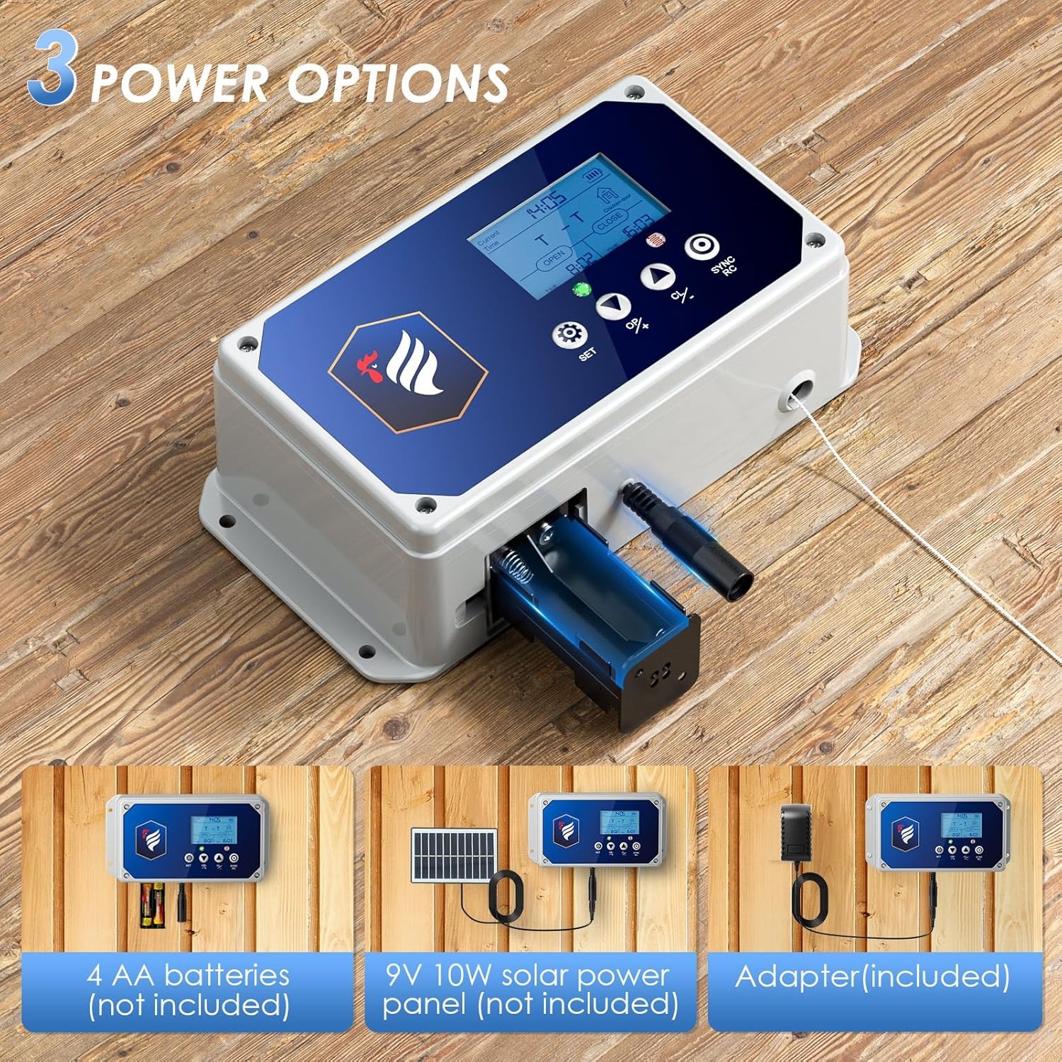 Apriporta per pollaio, porta automatica per pollaio,telecomando/manuale/sensore di luce/timer,3 modalità di alimentazione Alimentazione/Batteria/Energia solare, carico massimo 4 kg