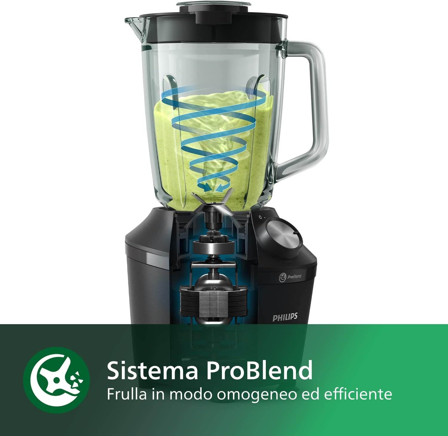 Philips Frullatore per Frullati e Smoothie - 600W, Caraffa da 2L, App di Ricette, 2 Velocità + Pulse, Lama ProBlend, Tritaghiaccio (HR2291/41)