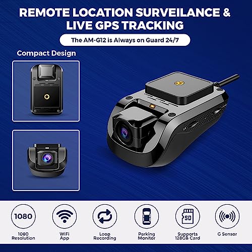 Amacam AM G12 Dash Cam Recorder– Streaming video live compatto 4G sul tuo smartphone. Fotocamera discreta per auto e tracciatore GPS preciso in tempo reale. Scheda SD da 64 GB inclusa. : Elettronica