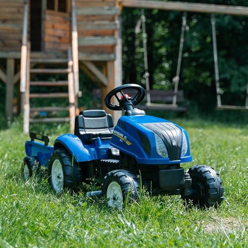 FALK Foglia Trattore a Pedali New Holland con rimorchio da 2 Anni Made in France Cofano apribile Volante con clacson 3080AB, Multicolore, L, 3080AB : Giochi e giocattoli