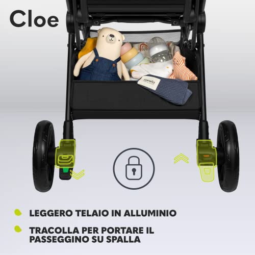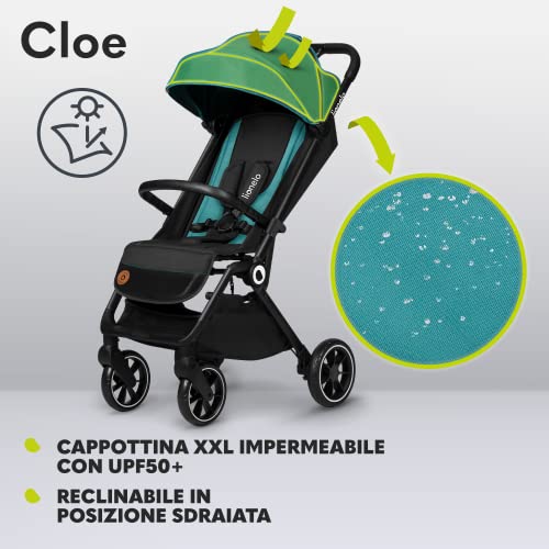 LIONELO Cloe Passeggino leggero e pieghevole per bambini da 0 fino a 22 kg, Schienale regolabile, Posizione nanna, Impermeabile, Cinture a 5 punti, Ruote XXL, Zanzariera, Portabicchieri (Verde) : Prima infanzia
