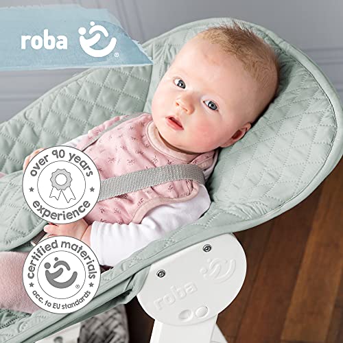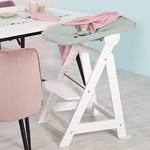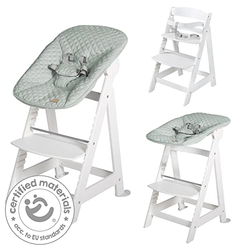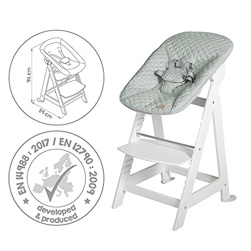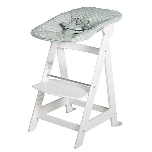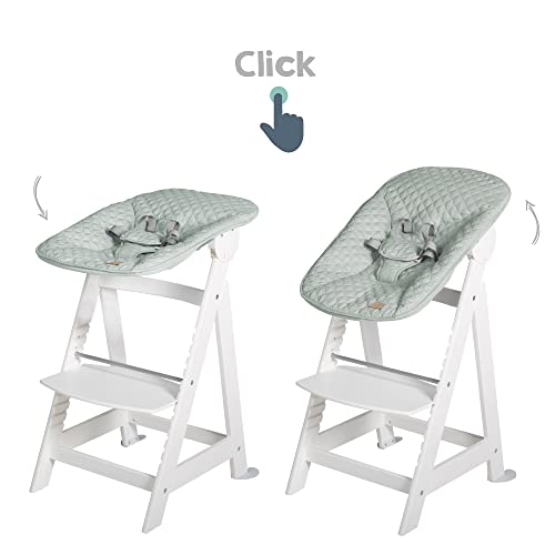 roba Seggiolone Evolutivo Born Up 2in1, Sdraietta roba Style Verde Ghiaccio Reclinabile, Fodera Impermeabile, Altezza Regolabile, Robusto e Resistente, Ergonomico, fino ai 70 kg, Legno Laccato Bianco : Prima infanzia