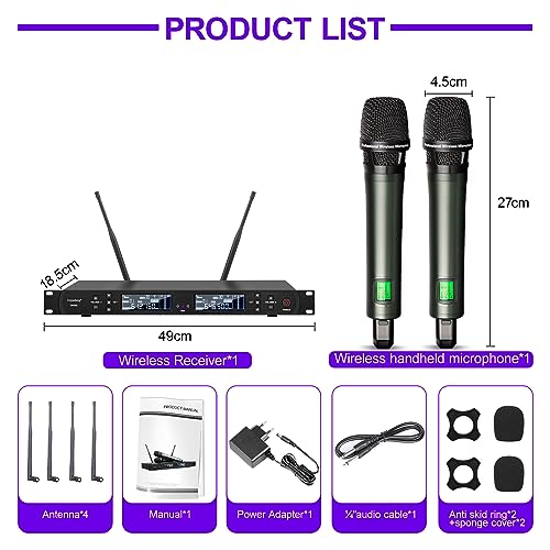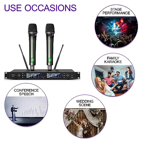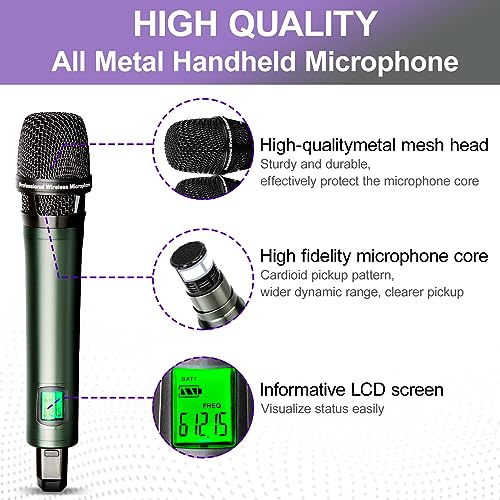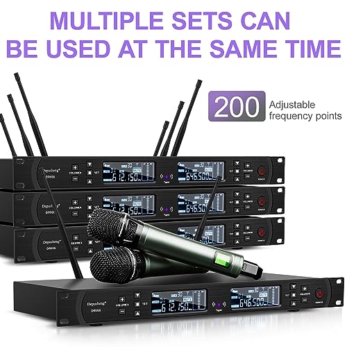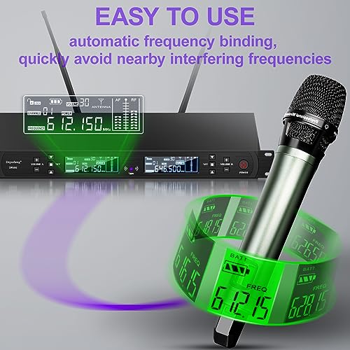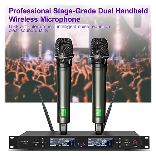 Depusheng DR666 Microfono wireless professionale Karaoke Doppio microfono senza fili palmare, scocca in metallo, ricezione a lunga distanza 100 metri, dedicato per il palcoscenico del bar : Strumenti Musicali