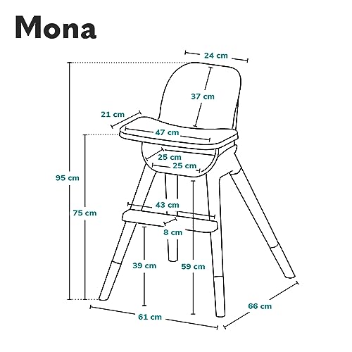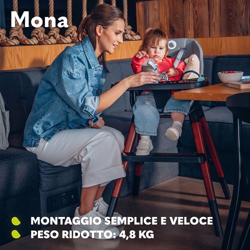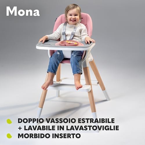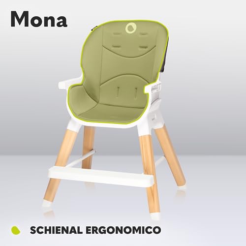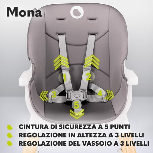 Lionelo Mona Seggiolone Pappa 4 in 1 Sgabello sedia turistica regolabile da 6 mesi fino a 75kg, Vassoio rimovibile, Feltrini antiscivolo, Pratico poggiapiedi Cinture 5punti, Arrotondato Bordi : Prima infanzia