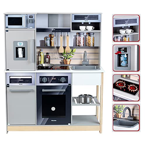 Theo Klein Cucina familiare Miele, in Legno con Fornello, Funzione Luci e Suoni, Forno a Microonde, Frigorifero con distributore di Cubetti di Ghiaccio, Accessori da Cucina, Giocattoli per Bambini 3 : Giochi e giocattoli