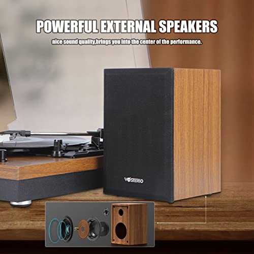 Vosterio Giradischi, Giradischi Vinile a Cinghia a 3 Velocità con Ingresso e Uscita Bluetooth, Lettore Vinile Contrappeso Regolabile e Cartuccia Magnetica, Altoparlante Esterno 2 x15 w rms, Noce : Elettronica