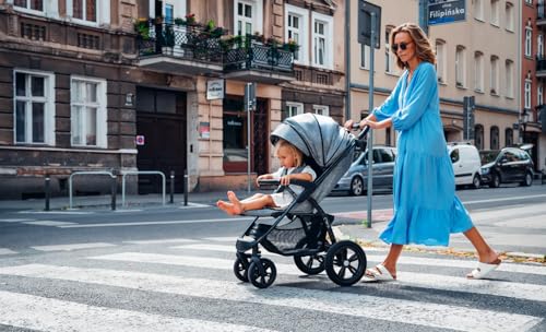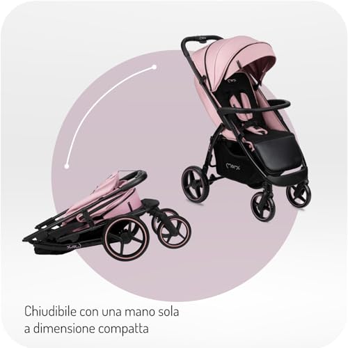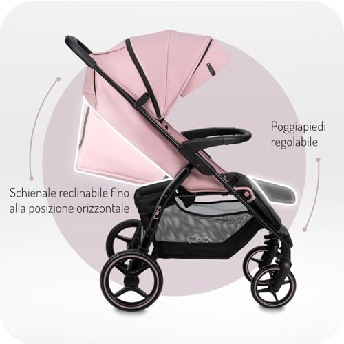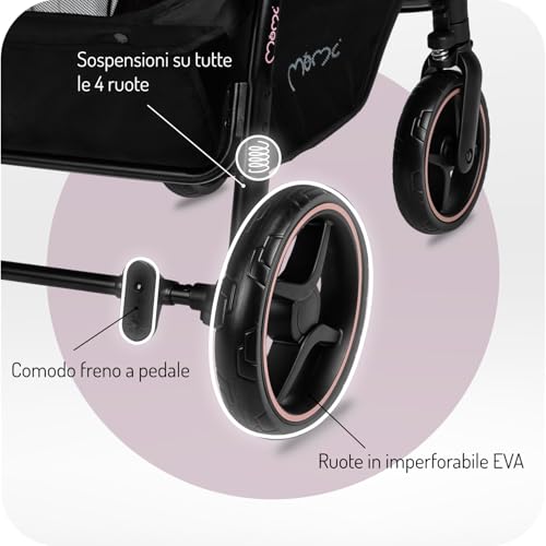 MoMi MIYA EVA Passeggino per bambini da 6 mesi (fino a 22 kg), cintura di sicurezza regolabile a 5 punti, cestino per la spesa, coprigambe, portabicchieri, parapioggia e zanzariera : Prima infanzia